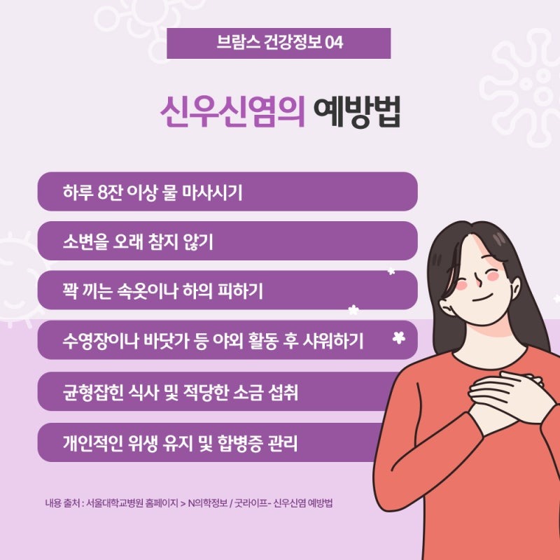 신우신염을 예방하기 위한 몇 가지 방법은 다음과 같습니다: