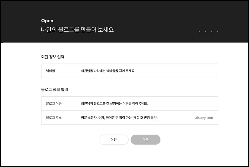 로그인 후에는 블로그를 개설할 수 있는 화면이 나타납니다. 여기서 블로그 이름과 주소를 설정하고, 필요한 정보를 입력하면 블로그가 생성됩니다.