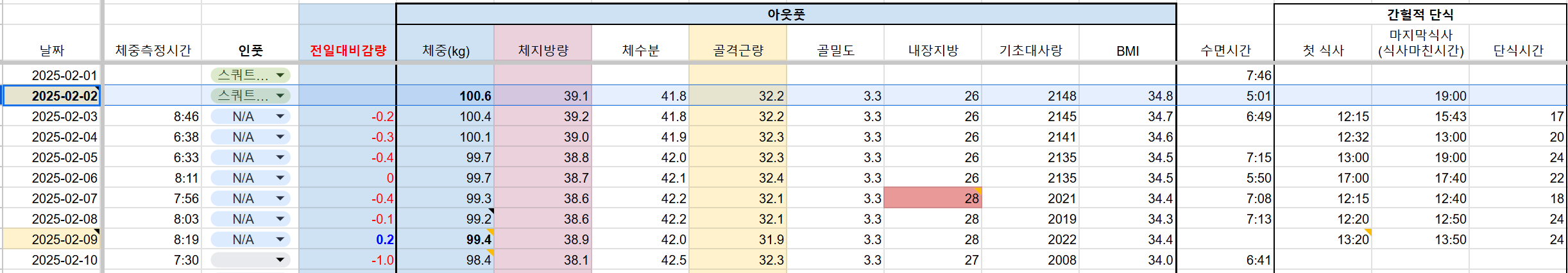 간헐적 단식 1주차 결과를 공유합니다! (기간: 2/2 ~ 2/9)